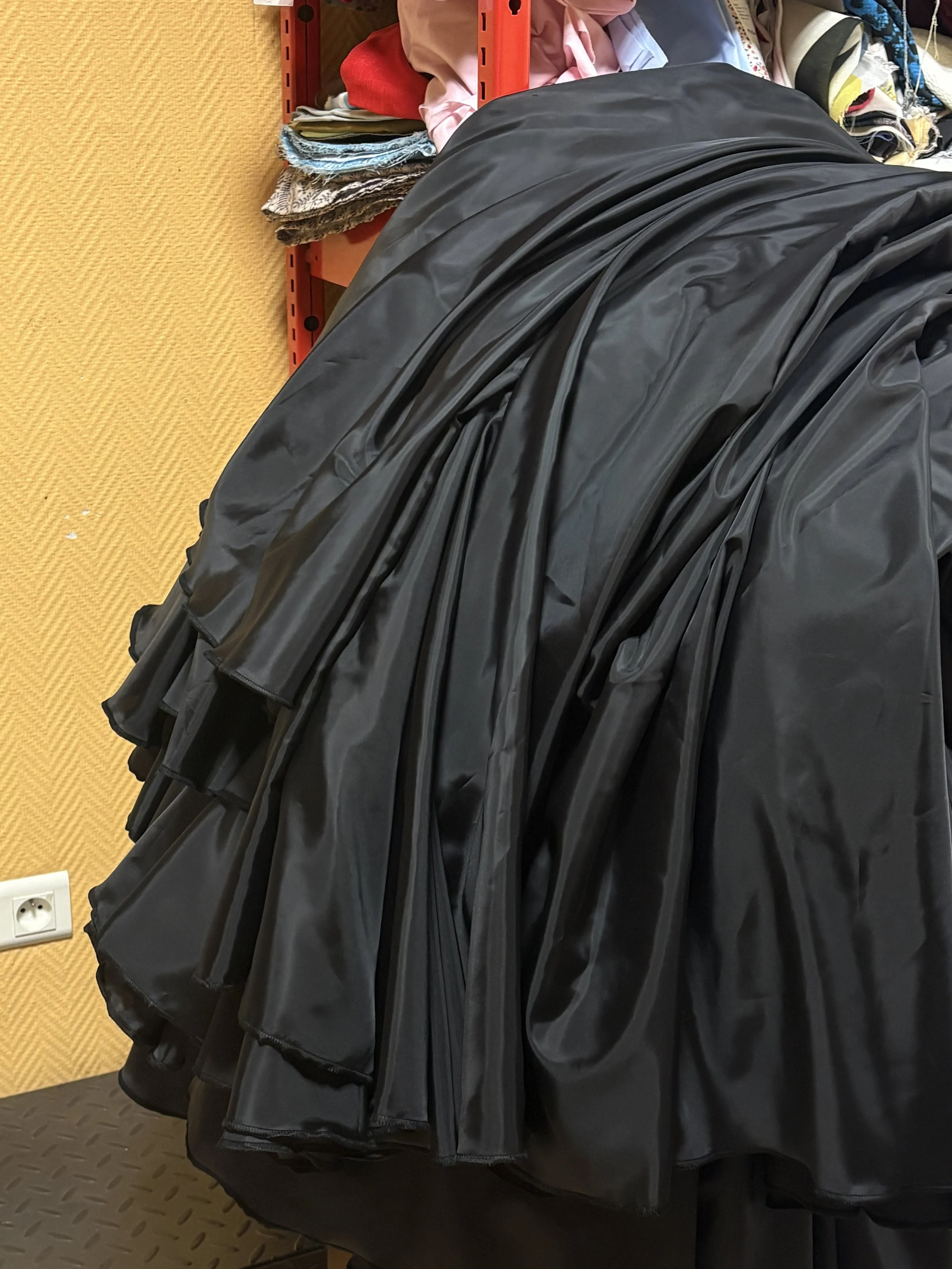 Second, I work in the design office on more complex projects independently. Two examples of these projects are: the installation of large draped textiles on a mechanical structure for the “Le Rendez-vous des Matières” fair organized by Formae in Paris, and the creation of 13 flowing serpentine dresses for a choreographer. These experiences allowed me to develop both leadership skills and advanced technical expertise in textile design and production.